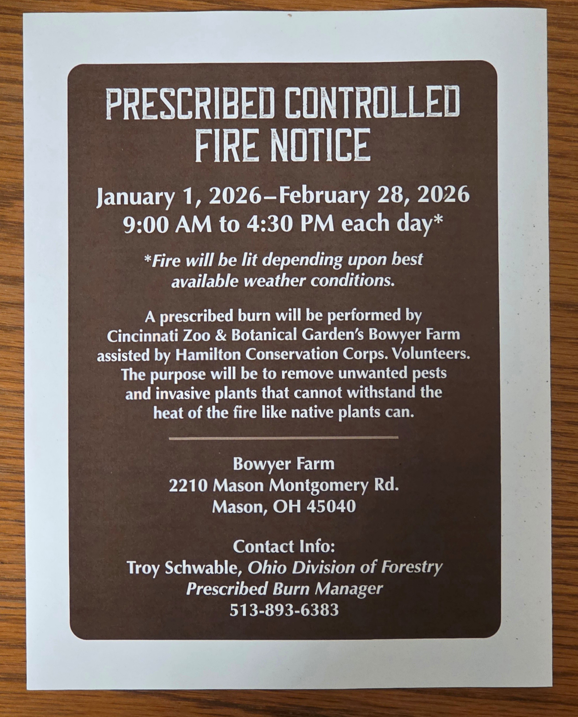 Cincinnati Zoo Prescribed Controlled Fire Notice 2026